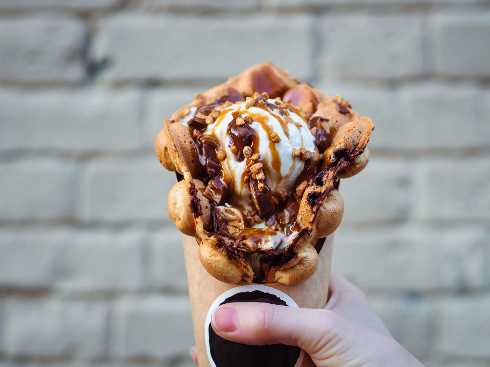 Gofry to obowiązkowy punkt wakacji, zwłaszcza nad morzem. Co jednak powiecie na połączenie gofrów z innym kultowym nadmorskim deserem? Mowa o gofrach bąbelkowych z lodami. Gofr jest złożony w kształt rożka, a w środku znajduje się porcja lodów i wybranych dodatków: owoce, śmietana lub polewa. Gofry bąbelkowe wyglądają zjawiskowo i są naprawdę pyszne.