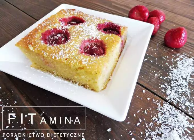 Bezglutenowe ciasto kokosowe z truskawkami