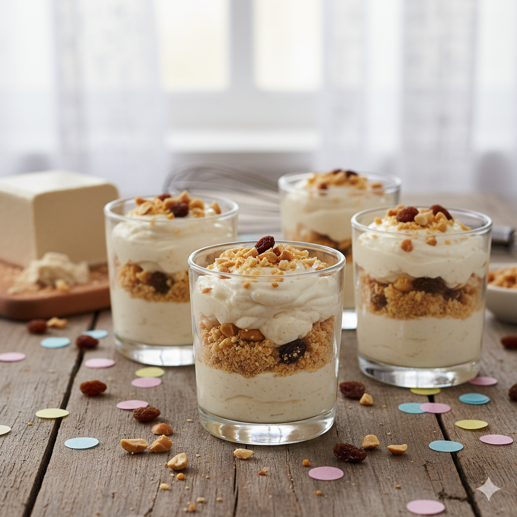 Ten deser również można serwować w małych pojemniczkach, a jego przygotowanie jest szybkie i wymaga jedynie kilku składników. Zacznij od zmiksowania serka mascarpone z chałwą na gładki krem. Schłodzoną śmietankę 30% ubijaj na sztywno, stopniowo dodając cukier, a następnie delikatnie połącz z przygotowaną wcześniej masą chałwową. Przełóż porcję do pojemniczków i posyp rodzynkami lub prażonymi orzeszkami ziemnymi.